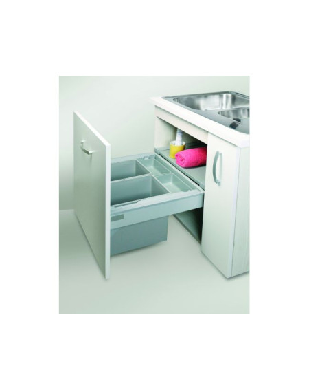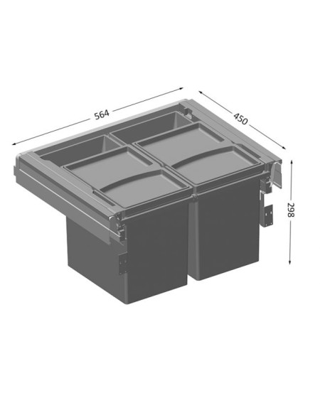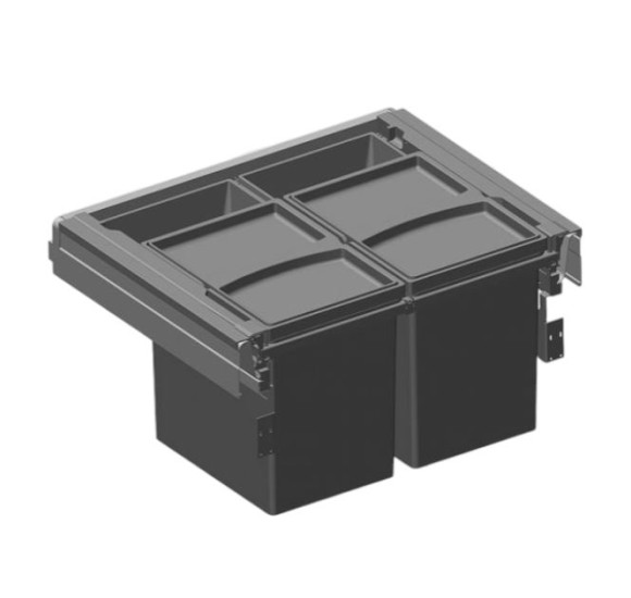 ALVEUS "Albio" šiukšlių rūšiavimo sistemos sukurtos taip, kad garantuotų kasdienį patogumą. Du didesni 17 litrų skyreliai sutalpins didesnių gabaritų šiukšles, leis išrūšiuoti atliekas į mišrias ir perdirbamas, o mažesni skyreliai po 1 litrą puikiai tinka maisto atliekoms rūšiuoti. Ši sistema montuojasi į spinteles, kurių plotis 60cm, atsidarant su stalčių sistema. Konteinerių dangteliai neleidžia sklisti nemaloniems kvapams.