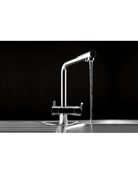 ALVEUS Aquila maišytuvas plautuvei – funkcionalus ir stilingas sprendimas, leidžiantis patogiai naudotis tiek įprastu, tiek filtruotu vandeniu. Dvi išbėgimo angos ir atskiros valdymo svirtys užtikrina patogumą: dešiniąja valdysite kasdienį šaltą ir karštą vandenį, o kairiąja – švarų, filtruotą vandenį. Tai praktiškas pasirinkimas, padedantis atsisakyti papildomo čiaupo filtrui ir išlaikyti vientisą virtuvės dizainą. L formos maišytuvas leis patogiai išplauti didesnius puodus, kepimo skardas, paliks pakankamai daug erdvės darbui virtuvėje.