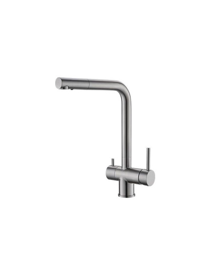 ALVEUS Aquila maišytuvas plautuvei - tai puikus pasirinkimas norint patogiai mėgautis švariu, filtruotu vandeniu. Dvi išbėgimo angos ir dviejų svirčių valdymas leidžia naudotis tiek įprastu karštu ar šaltu vandeniu, tiek filtruotu vandeniu. Satininis: pusiau matinis, pusiau blizgus paviršius suteikia modernią estetiką ir lengvai dera prie įvairių plautuvių. Tai itin patogus ir funkcionalus pasirinkimas Jūsų virtuvei!
