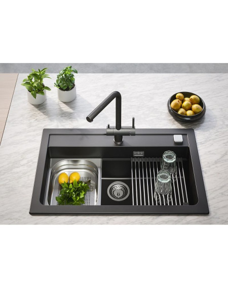 Trys spalviniai variantai: balta, smėlio ir juoda (carbon) derės prie granitinių/akmens masės plautuvių. Rekomenduojame derinti su ALVEUS plautuvėmis. Tai ilgaamžis, patikimas ir itin funkcionalus pasirinkimas Jūsų virtuvei!