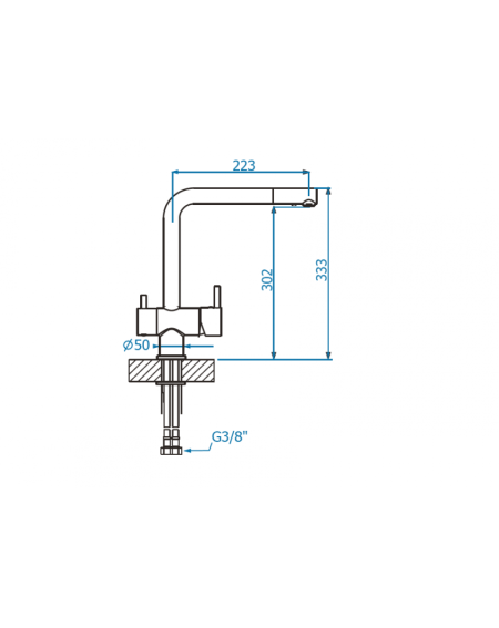 - Aukštis nuo montuojamo paviršaus iki aeratoriaus mm