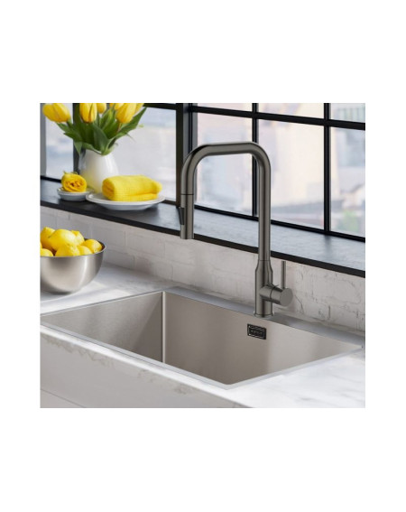 Maišytuvas turi patogų ištraukiamą dušelį, užtikrinantį maksimalų komfortą kasdienio naudojimo metu. Ištraukiamo dušelio funkcija ypač praverčia plaunant daržoves ar valant plautuvę, nes leidžia patogiai pasiekti visus jos kampus.