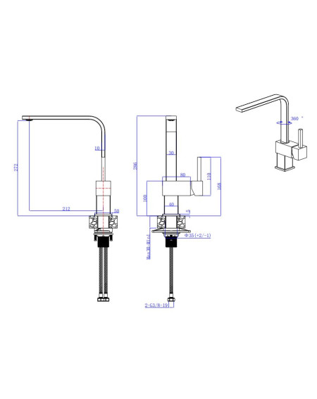 - Maišytuvas leidžia suktis 360°. Tai patogi funkcija, leidžianti įvairesnes montavimo galimybes;