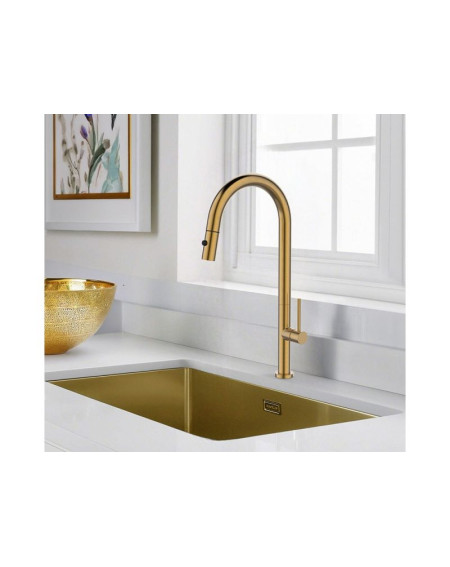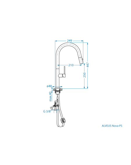ALVEUS Nova - PS Monarch kolekcijos maišytuvas plautuvei, pasižymintis elegantišku, minimalistiniu dizainu. Lenktas C formos snapas ir delikati reguliavimo rankenėlė suteikia virtuvės interjerui lengvumo ir prabangos pojūtį. Keturi PVD atspalviai tobulai dera prie Alveus nerūdijančio plieno plautuvių, Monarch kolekcijos įrangos.