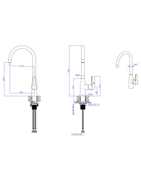 Maišytuvas pasižymi 360° pasisukimo funkcija, užtikrinančia maksimalų patogumą kasdienėje veikloje – nuo didesnių indų plovimo iki dvigubo dubens plautuvių naudojimo. Toks sprendimas suteikia daugiau laisvės ir funkcionalumo, leidžiant patogiai pritaikyti maišytuvą pagal individualius virtuvės poreikius.