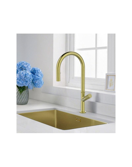 ALVEUS Swan - PS Monarch kolekcijos maišytuvas plautuvei, pasižymintis elegantišku, minimalistiniu dizainu. Lenktas C formos snapas ir delikati reguliavimo rankenėlė suteikia virtuvės interjerui lengvumo ir prabangos pojūtį. Keturi šlifuoto paviršiaus PVD atspalviai tobulai dera prie Alveus nerūdijančio plieno plautuvių, Monarch kolekcijos įrangos.
