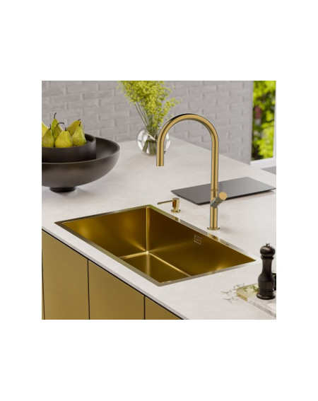 ALVEUS Swan - PS Monarch kolekcijos maišytuvas plautuvei, pasižymintis elegantišku, minimalistiniu dizainu. Lenktas C formos snapas ir delikati reguliavimo rankenėlė suteikia virtuvės interjerui lengvumo ir prabangos pojūtį. Keturi šlifuoto paviršiaus PVD atspalviai tobulai dera prie Alveus nerūdijančio plieno plautuvių, Monarch kolekcijos įrangos.