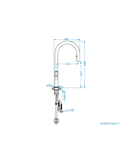 ALVEUS Swan-PS Monarch - tai išskirtinio dizaino virtuvinis maišytuvas, sukurtas taip, kad suteiktų ypatingą dizaino pojūtį. Šis modelis pasižymi subtiliomis linijomis, elegantišku lenktu C formos snapu ir minimalistine reguliavimo rankenėle. Maišytuvas turi ištraukiamą dušelį, užtikrinantį patogumą kasdienėje buityje – indų, daržovių ar plautuvės plovimas tampa ypač paprastas ir efektyvus.