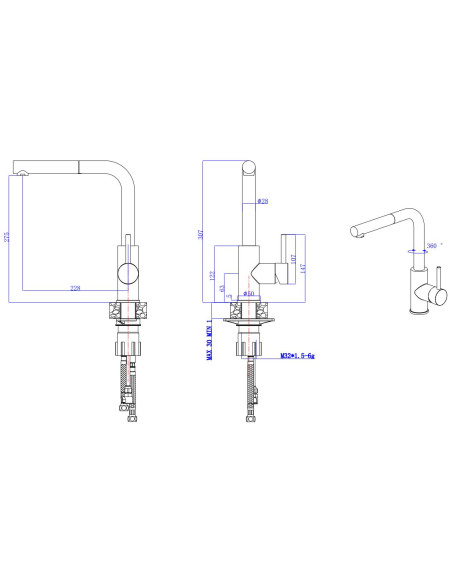 - Aukštis nuo montuojamo paviršaus iki aeratoriaus mm