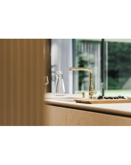 ALVEUS Zeos-P Monarch – modernus L formos maišytuvas su ištraukiama žarnele, suteikiantis maksimalų patogumą virtuvėje. 360° pasisukimas bei funkcionali konstrukcija leidžia lengvai pasiekti kiekvieną plautuvės kampą, o akį traukiantis dizainas tampa stilingu virtuvės akcentu.