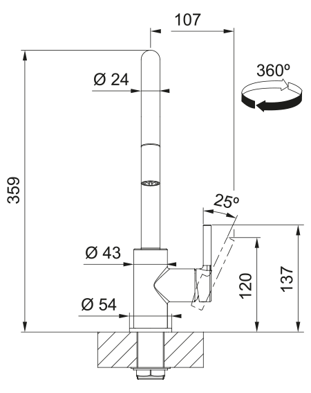 FRANKE Lina maišytuvas su ištraukiama žarna. Valdymas dešinėje pusėje. Maišytuvo pasisukimo kampas 150 laipsnių. Vandens srautas 11 L/min.