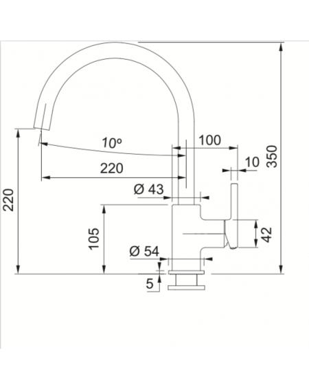 FRANKE Lina XL maišytuvas su fiksuotu snapu. Valdymas dešinėje pusėje. Maišytuvo pasisukimo kampas 360 laipsnių. Vandens srautas 12 L/min.