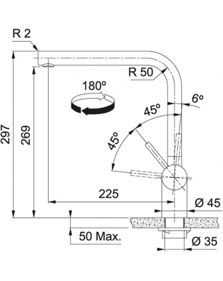 Montuojama iš viršaus ("Bell") nerūdijančio plieno plautuvė BCX 610-51 su užkemšamu ranka ventiliu komplekte.