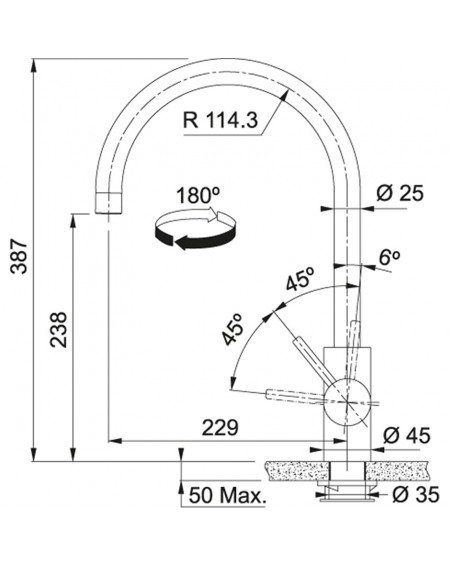 - Maišytuvas pasukamas 180 laipsnių kampu;
