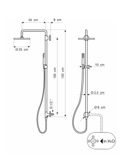 QD MagistroLab Classy – tai elegantiškas virštinkinis dušo stovo komplektas, sukurtas suteikti jūsų vonios kambariui stilingą ir funkcionalią dušo zoną. Komplektą sudaro pasirenkamo dydžio „lietaus“ dušo galva, stovas su vandens pajungimu apačioje, minimalistinis rankinis dušelis ir 1500 mm ilgio lanksti, nesusisukanti dušo žarna. Maišytuvo komplekte nėra - jį reikia įsigyti papildomai.
