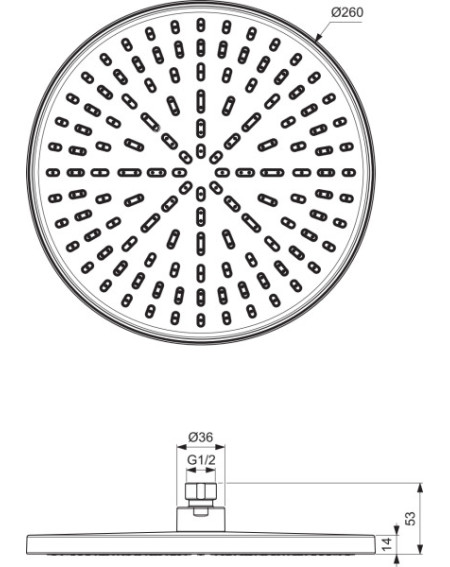 Ideal Standard Idealrain – elegantiška, apvalios formos „lietaus“ dušo galva, kurios įspūdingas Ø260 mm skersmuo suteikia tikrą komforto jausmą maudynių metu. Šis modelis sukurtas siekiant derinti modernų dizainą, funkcionalumą ir ilgaamžiškumą, todėl puikiai tiks tiek klasikiniam, tiek šiuolaikiniam vonios kambario interjerui.