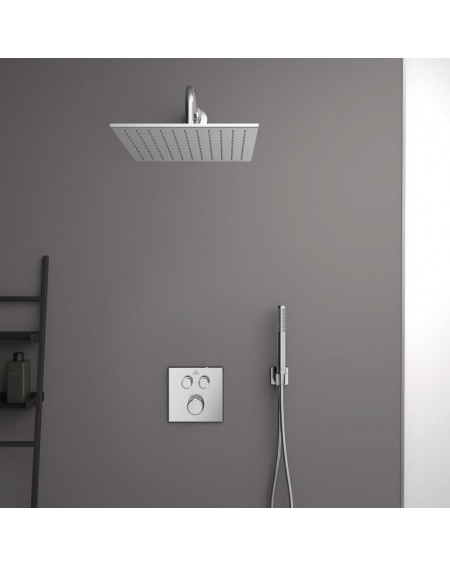 Ideal Standard Idealrain Atelier stacionari kvadratinė „Lietaus“ dušo galva – prabanga ir komfortas jūsų vonios kambariui. Net 30x30 cm pločio galva sukuria plačią, švelnią ir gaivinančią vandens srovę, kuri maloniai apgaubia visą kūną, suteikdama tikro lietaus pojūtį. Purkštukai silikoniniais, todėl galva turi antikalkinių savybių - kalkių nuosėdas galima nuvalyti pirštu prabraukiant per purkštukus.
