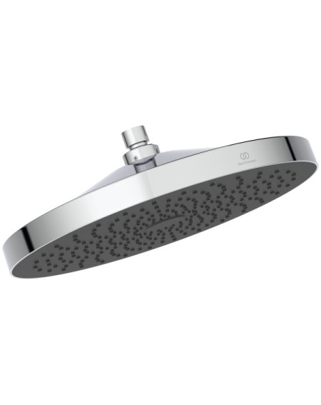 Ideal Standard Idealrain Solos apvali "lietaus" dušo galva, kurios skersmuo net 300 mm. Dušo galva turi vieną purškimo rėžimą: Silkrain. "EasyClean" visiškai silikoninis paviršius, kuris apsaugo nuo kalkių nuosėdų kaupimosi, palengvina valymą.