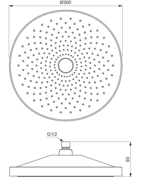 - 300 mm skersmens "lietaus" dušo galva;