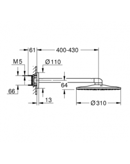 - Horizontalus 430 mm ilgio dušo galvos laikiklis;