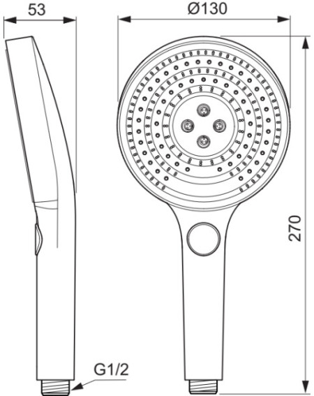 - Rankinis dušelis 130 mm skersmes, su 3 purškimo rėžimais;