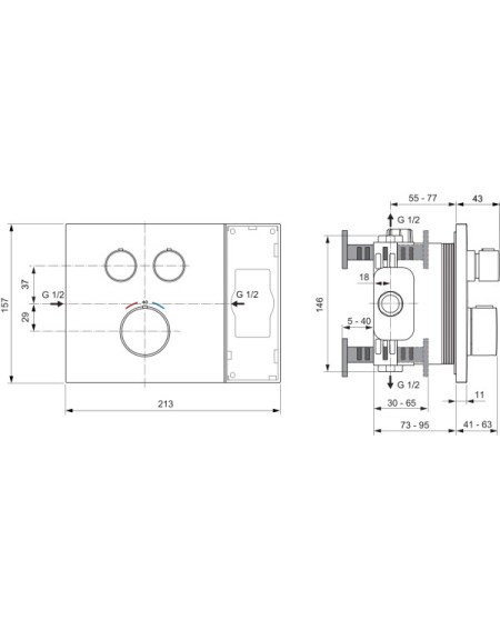 Sistemos širdis – aukštos klasės termostatinis maišytuvas, užtikrinantis tolygią vandens temperatūrą net esant slėgio svyravimams. Dėl integruoto apsauginio užrakto ties 40 °C galite būti ramūs dėl saugumo – net ir netyčia padidinus karšto vandens srautą, vanduo neįkais iki pavojingos temperatūros. Vandens paleidimas aktyvinamas vienu mygtuko paspaudimu, o temperatūra reguliuojama patogiu sukamuoju ratuku – intuityvu, greita ir tikslu.