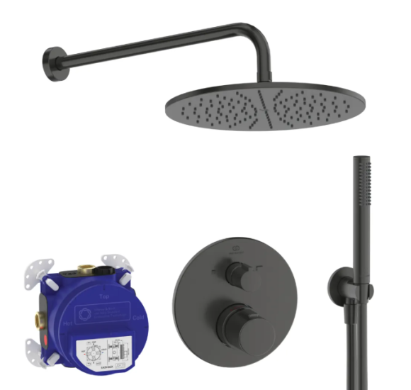 Ideal Standard T100 termostatinės dušo sistemos komplektas, šlifuotos juodos (grafito PVD) spalvos