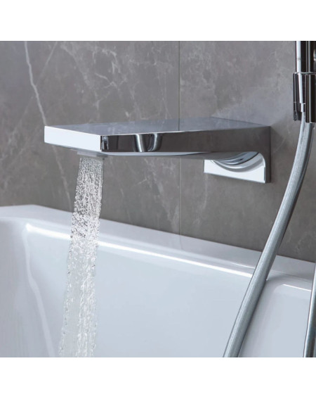 Hansgrohe Metropol vonios pripildymo snapas. Šis snapas žavi savo tiksliu, geometriniu dizainu. Platus aeratorius sukuria krioklio srovę, o "AirPower" technologija pamaišo vandenį su oru, todėl srovė labai lengva, švelni, mažiau taškosi.