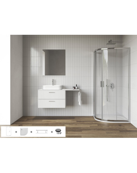 Ravak 5in1 dušo kabinos komplektas. Viskas vienoje vietoje - jūsų patogumui sukomplektuotas rinkinys su dušo kabina, padėklu, kojelėmis, apdaila ir sifonu. Optimalus ir patogus dušo kabinos dydis, stumdomos dušo kabinos durys užtikrins patogų naudojimą net ir mažame vonios kambaryje.