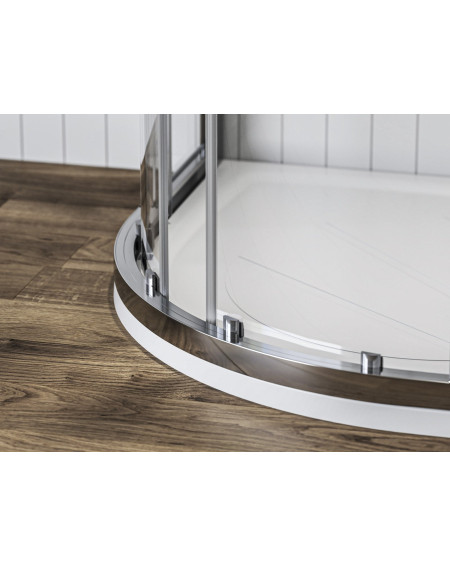 - Pusapvalės formos kabina Ravak Blix II su chromo spalvos profiliais;