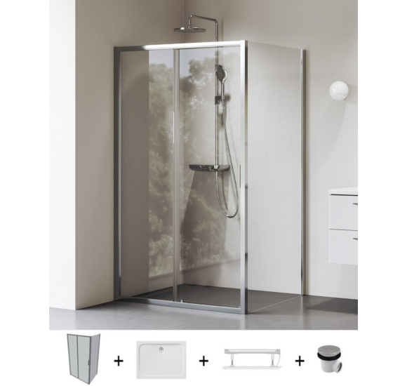 Ravak Blix II NBLDP2+NBLPS dušo komplektas, 90x120, chromo spalvos profiliai