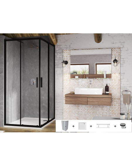Ravak Blix Slim dušo komplektas 5in1. Jūsų patogumui paruoštas dušo komplektas: nuo kojelių, apdailų iki pačios dušo kabinos. Viskas vienoje vietoje - papildomai daugiau nieko nereikia įsigyti. Modernaus dizaino keturkampė dušo kabina su pasirenkamos spalvos profiliais: galima rinktis iš chromo ir juodos spalvos.