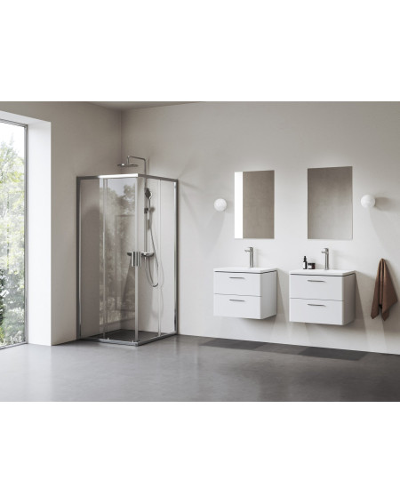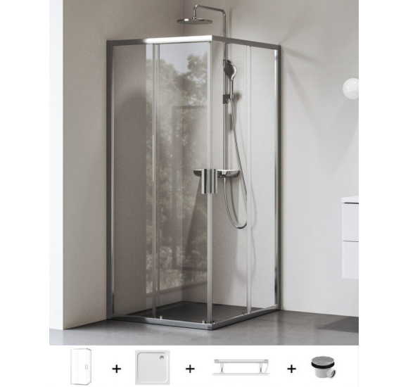 Ravak Blix II NBLRV2 keturkampės dušo kabinos komplektas 5in1. Viskas ko reikia dušo montavimui - nuo sifono ir padėklo kojelių iki dušo sienelių. Jūsų patogumui sukomplektuotas rinkinys, kad įsirengti vonios kambarį būtų dar paprasčiau! Šiuolaikiško dizaino dušo kabina su blizgaus chromo spalvos profiliais suteikia vonios kambariui modernumo ir estetikos pojūtį.