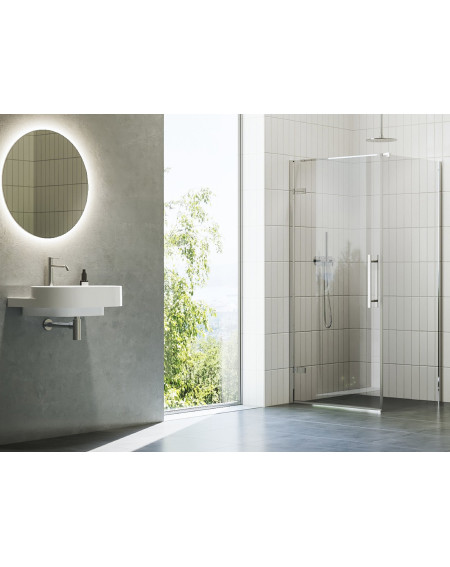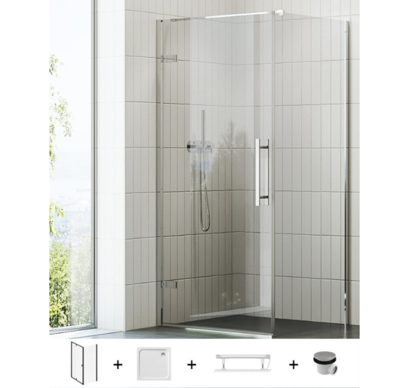 - Dušo kabinos sienelė ir durys (COSD1+COPS) su blizgiais chromo spalvos profiliais;