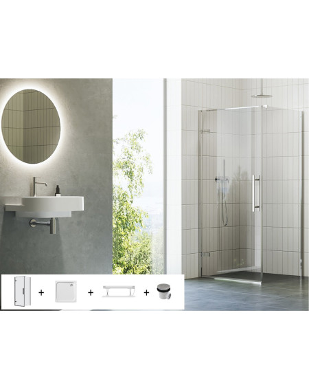 Ravak Cool dušo kabinos komplektas 5in1. Jūsų patogumui - viskas vienoje vietoje, nuo kojelių ir sifono iki stiklinės dušo sienelės bei durų. Dušo kabina Cool su chromo spalvos profiliais - vienas populiariausių mūsų turimų modelių! Optimalus 90x90 kabinos dydis, tinkantis ir į mažesnius vonios kambarius, tačiau neapribojantis prausimosi erdvės. Ši kabina pakankamai erdvi ir nevaržanti judesių!