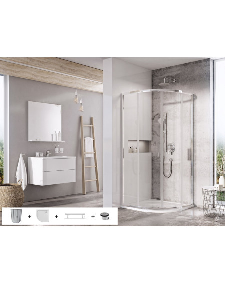 Ravak Blix Slim 5in1 dušo komplektas – tai praktiškas, pilnai sukomplektuotas sprendimas, leidžiantis iš karto įsirengti visą dušo zoną be papildomų pirkinių. Komplekte rasite viską, ko reikia: nuo kojelių ir apdailų iki pačios dušo kabinos bei sifono. Šis klasikinio dizaino pusapvalis modelis idealiai tinka mažesniems vonios kambariams, nes dėl stumdomų durų sistemos neužima papildomos vietos.