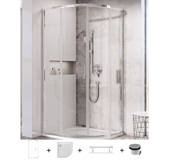 Ravak Blix Slim dušo komplektas 5in1. Jūsų patogumui paruoštas dušo komplektas: nuo kojelių, apdailų iki pačios dušo kabinos. Viskas vienoje vietoje - papildomai daugiau nieko nereikia įsigyti. Klasikinio dizaino pusapvalė dušo kabina, kuri tobulai tinka mažesniuose vonios kambariuose.