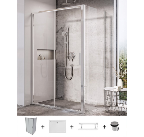 Ravak dušo komplektas Blix Slim 100x80, chromo spalvos profiliai, pasirenkama pusė