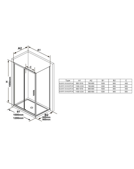 - Blix Slim BLSDP2 + BLSPS dušo kabina