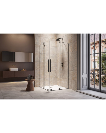 Radaway Furo KDD kampinė dušo kabina chromo spalvos profiliais.