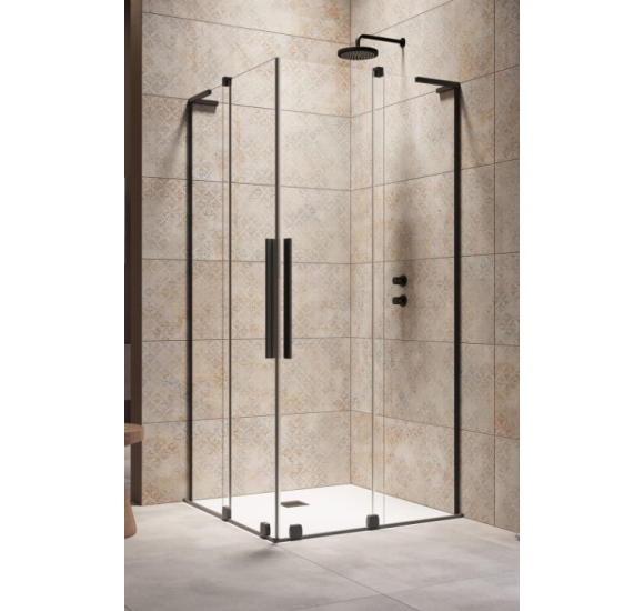 Radaway Furo KDD kampinė dušo kabina juodos spalvos profiliais.