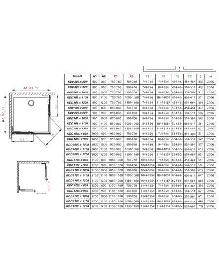 Atkreipkite dėmesį, kad montavimo matmenys yra mažesni, nei vardiniai dušo kabinos matmenys: 850-860 mm x 850-860 mm.