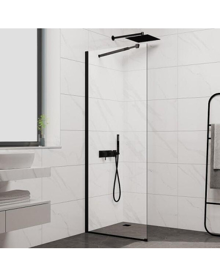 Ideal Standard CONNECT 2 dušo sienelė su juodos spalvos profiliais puikiai dera vonios kambaryje su juodos matinės spalvos santechnikos įranga. Dušo sienelė yra pagaminta iš 6mm storio grūdinto stiklo. Tvirtinama prie sienos įstatant į aliuminį profilį bei stabilizuojant su papildomai perkamu laikikliu. Laikiklis gali būti tiesus arba montuojamas skersai.