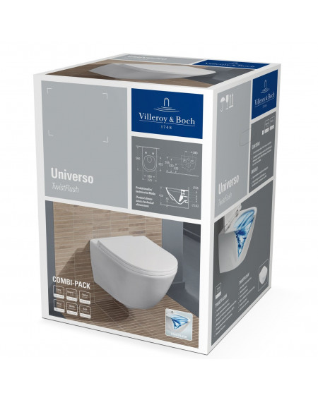 Villeroy&Boch Universo pakabinamas klozetas su "Soft Close" dangčiu, "TwistFlush" sūkurinis nuleidimas 4670T901