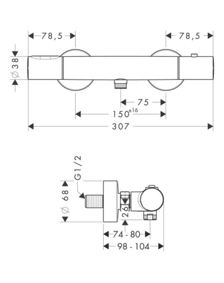 Hansgrohe AXOR Citterio M termostatinis maišytuvas dušui, kuris pasižymi patvarumu, estetišku dizainu ir novatoriškomis technologijomis. Cilindrinis minimalistinis korpuso dizainas šonuose turi beveik nepastebimas reguliavimo rankenėles, kuriomis patogiai galima nusistatyti vandens tėkmę bei temperatūrą.