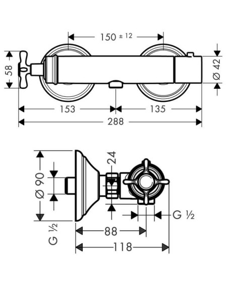 Hansgrohe AXOR Montreux termostatinis dušo maišytuvas su kryžmine reguliavimo rankenėle. Šis maišytuvas pasižymi savo unikaliu dizainu, tinkančiu retro ar vintažinio stiliaus vonios kambariams, tačiau sukurtas nepamiršant novatoriškų technologijų ir funkcionalumo. Vandens kiekį galima tiksliai reguliuoti vandenį taupančio termostato valdymo rankenėle, o termostatas užtikrina visuomet pastovios temperatūros vandens srovę.