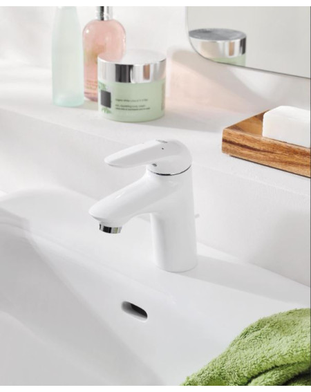 Grohe Eurostyle maišytuvas praustuvui. Baltos spalvos maišytuvas, pasižymintis aptakiomis, užapvalintomis linijomis. Patogi valdymo rankenėlė užtikrina maksimalų komfortą. Komplekte pridedamas "Pop-up" dugno vožtuvas su išoriniu valdymu.