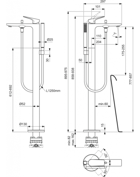 Ideal Standard La Dolce Vita Grindinis vonios maišytuvas su rankiniu dušeliu - kokybe ir prabangiu dizainu pasižymintis gaminys stilingai vonios kambario erdvei. Nerūdijančio plieno, šlifuoto paviršiaus aukso bei juoda spalva yra dengtos PVD technologijos būdu. Norint išlaikyti vonios interjero vientisumą, rekomenduojame derinti su kitais La Dolce Vita maišytuvais. Gaminio ypatybės: