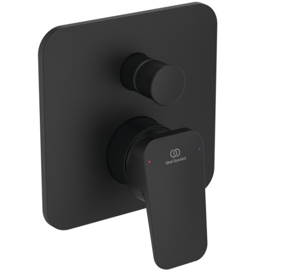 Ideal Standard Ceraplan potinkinis dušo / vonios maišytuvas su potinkine dalimi komplekte. Geometrinių formų, estetiško dizaino maišytuvas turi patogią metalinę rankenėlę, kuria lengvai reguliuosite vandens srovę ir temperatūrą net ir muiluotomis rankomis. Integruotas automatinis diverteris, perjungiantis vandens srovės kryptį.