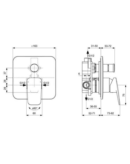 Ideal Standard Ceraplan potinkinis dušo arba vonios maišytuvas – tai modernus ir funkcionalus sprendimas, sukurtas užtikrinti patogų naudojimą ir harmoningą vonios kambario dizainą. Kvadratinės formos korpusas su subtiliai užapvalinta metaline rankenėle ir apvaliu diverteriu suteikia maišytuvui estetišką, šiuolaikišką išvaizdą, kuri puikiai dera prie įvairių interjerų.